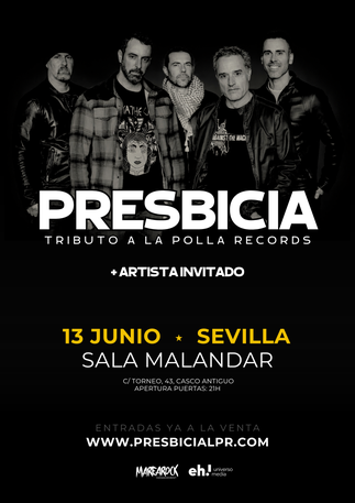La gira de PRESBICIA (Tributo a La Polla Records) junto a ALGAZARA (Tributo a Reincidentes) aterriza en MADRID para hacerte pasar una noche única. El proyecto PRESBICIA liderado por el actor DANIEL GUZMÁN rinde homenaje desde el corazón a uno de los músicos que más le ha influido en su vida, Evaristo Páramos, dando un extenso repaso a esos temas que aún siguen más presentes y vivos que nunca.